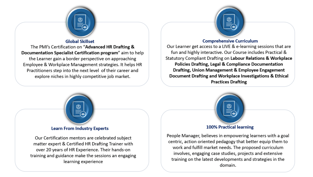 The Certified HR Drafting & Documentation Specialist Certificate Program is a comprehensive training designed for HR professionals, recruiters, managers, and legal experts who want to sharpen their expertise in creating clear, compliant, and effective HR documents. This hands-on program equips participants with the essential drafting techniques needed to manage employment-related documentation seamlessly and in compliance with labour laws.