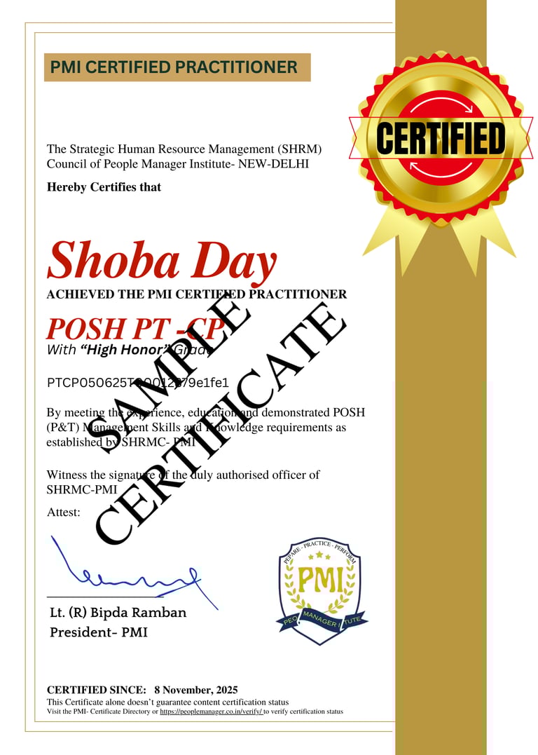 The Advanced POSH Practitioner -Cum- POSH Trainer Certificate Program is a specialized training initiative designed to equip professionals with in-depth expertise in Prevention of Sexual Harassment (POSH) compliance, policies, and implementation. This program goes beyond foundational knowledge, enabling participants to become certified trainers and expert practitioners in fostering safe and respectful workplace environments.