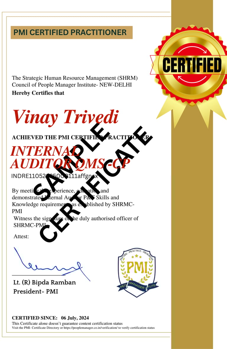 The Certification in Internal Auditor is a specialized course that equips QMS/HR Practitioner with the skills and knowledge required to manage Quality Management Audits in organizations. This Certification program focuses on effective Process management, Internal Auditing, and ensuring harmonious QMS Certification. Plan and Confidently Conduct Quality Management System Audits - Plain and Simple Language