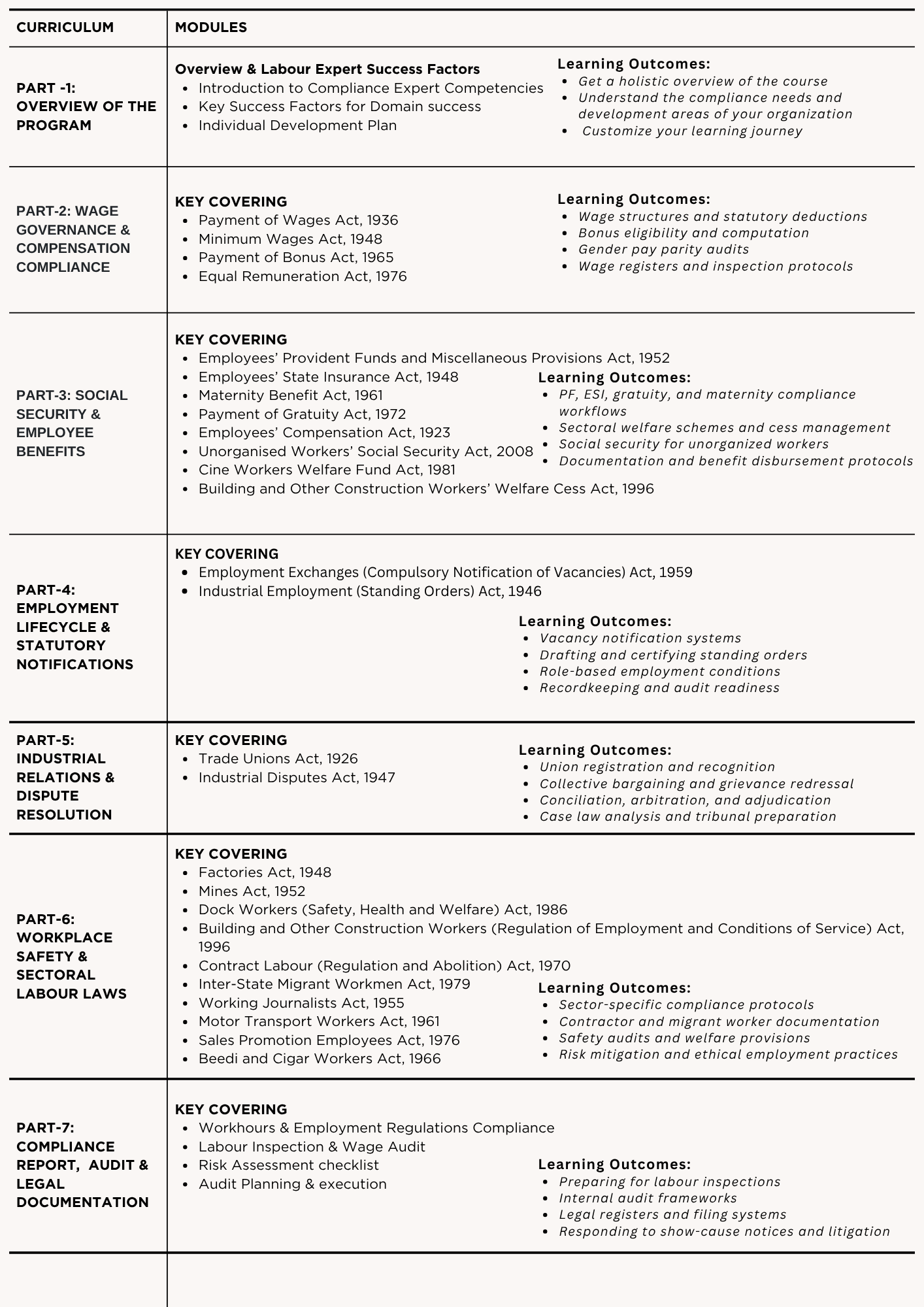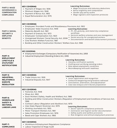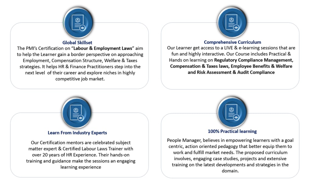Master the concepts of Labour laws for Factories, Shop & Commercial Establishment, Mines, Service Industries to become a Certified Labour law Compliance Specialist with our Online Certification Course on the Indian Labour laws and Employment Regulation