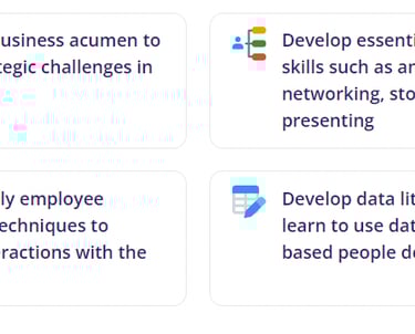 Are you taking on new job responsibilities? Looking to upskill your knowledge on the latest HR Business & People partnering practices? This program teaches the essentials of creating a comprehensive HRBP Practice System and how the HR Business & people partnering activities of HRBP Role can lead to exponential growth.